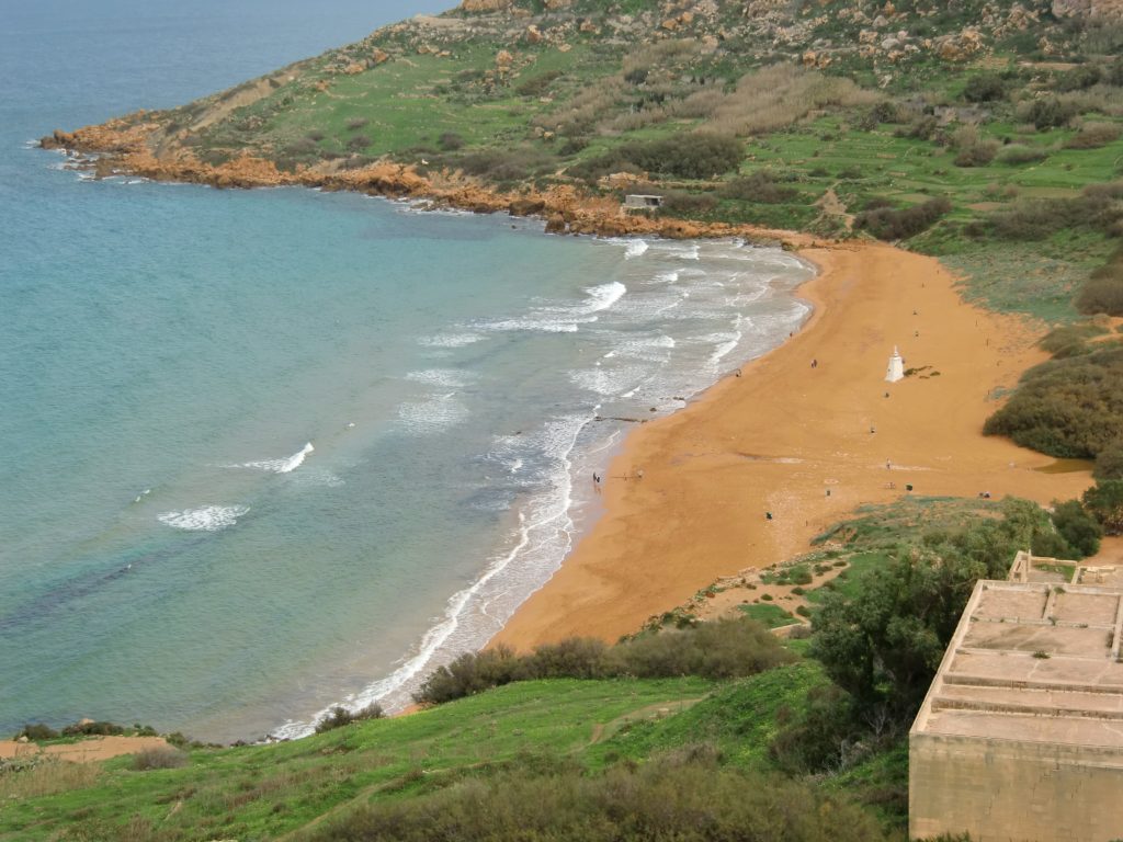 La prima tappa è stata Ramla Bay, una spiaggia che sorprende per il colore della sabbia: un rosso caldo, quasi aranciato, che contrasta con il blu intenso del mare. La baia è incorniciata da colline verdi e da una vegetazione spontanea che le conferisce un aspetto selvaggio e incontaminato. Camminando lungo la riva, si percepisce una calma profonda, interrotta solo dal rumore delle onde e dal volo basso dei gabbiani.