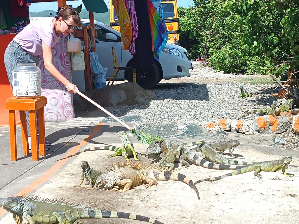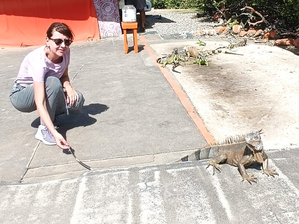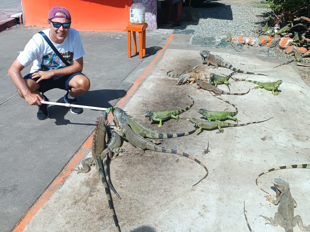 Una delle esperienze più coinvolgenti dell’incontro è stata la possibilità di offrire loro alcune foglie fresche. Le iguane si sono avvicinate lentamente, allungando il collo e afferrando il cibo con movimenti precisi. Un momento semplice ma perfetto per scattare foto e vivere un contatto diretto con la fauna locale.