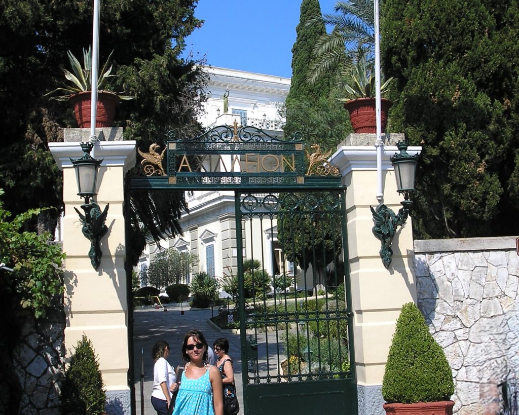 Durante la nostra vacanza a Corfù, tra spiagge tranquille e villaggi sospesi nel tempo, decidiamo di visitare l’Achilleion, il palazzo che l’imperatrice Elisabetta d’Austria, meglio nota come Sissi, fa costruire per ritrovare un angolo di quiete lontano dalla corte. Il bianco delle colonne, il verde dei giardini e la vista sul mare sembrano promettere proprio questo.