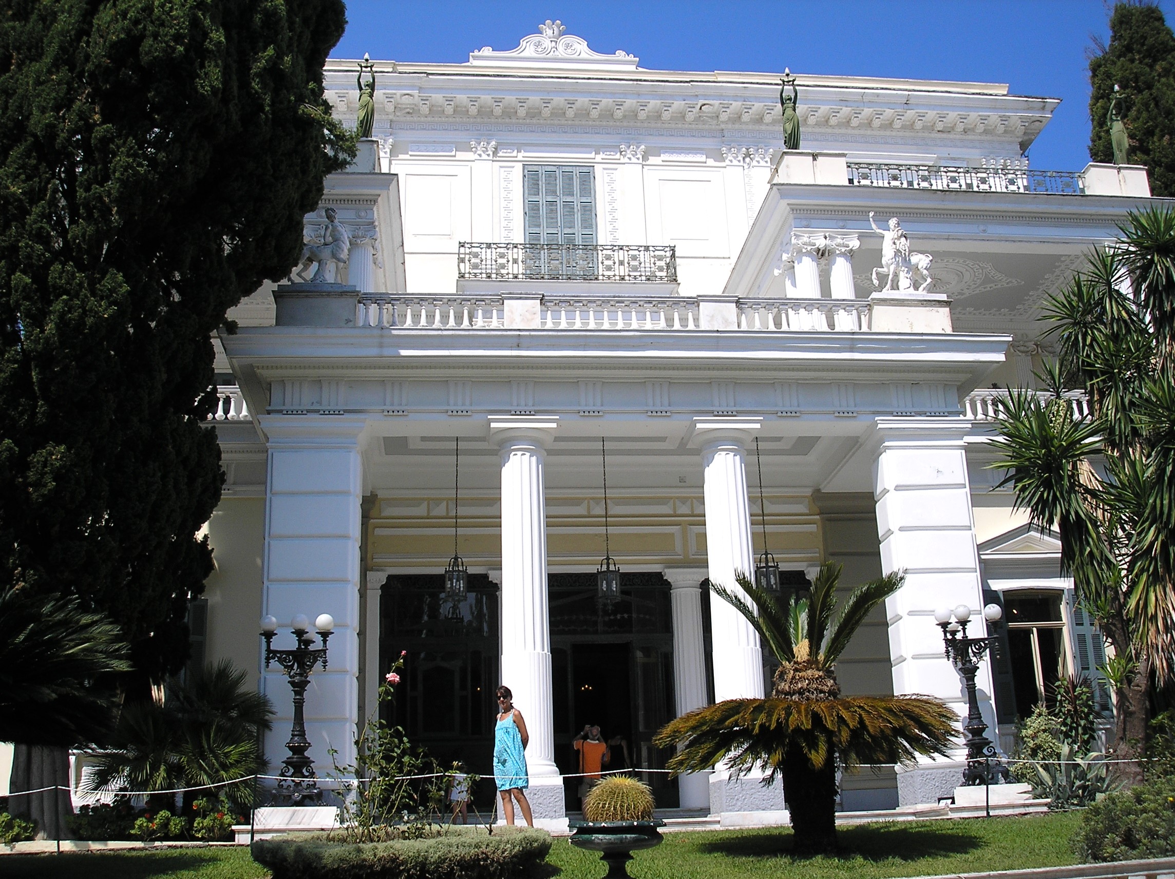 Durante la nostra vacanza a Corfù, tra spiagge tranquille e villaggi sospesi nel tempo, decidiamo di visitare l’Achilleion, il palazzo che l’imperatrice Elisabetta d’Austria, meglio nota come Sissi, fa costruire per ritrovare un angolo di quiete lontano dalla corte. Il bianco delle colonne, il verde dei giardini e la vista sul mare sembrano promettere proprio questo.