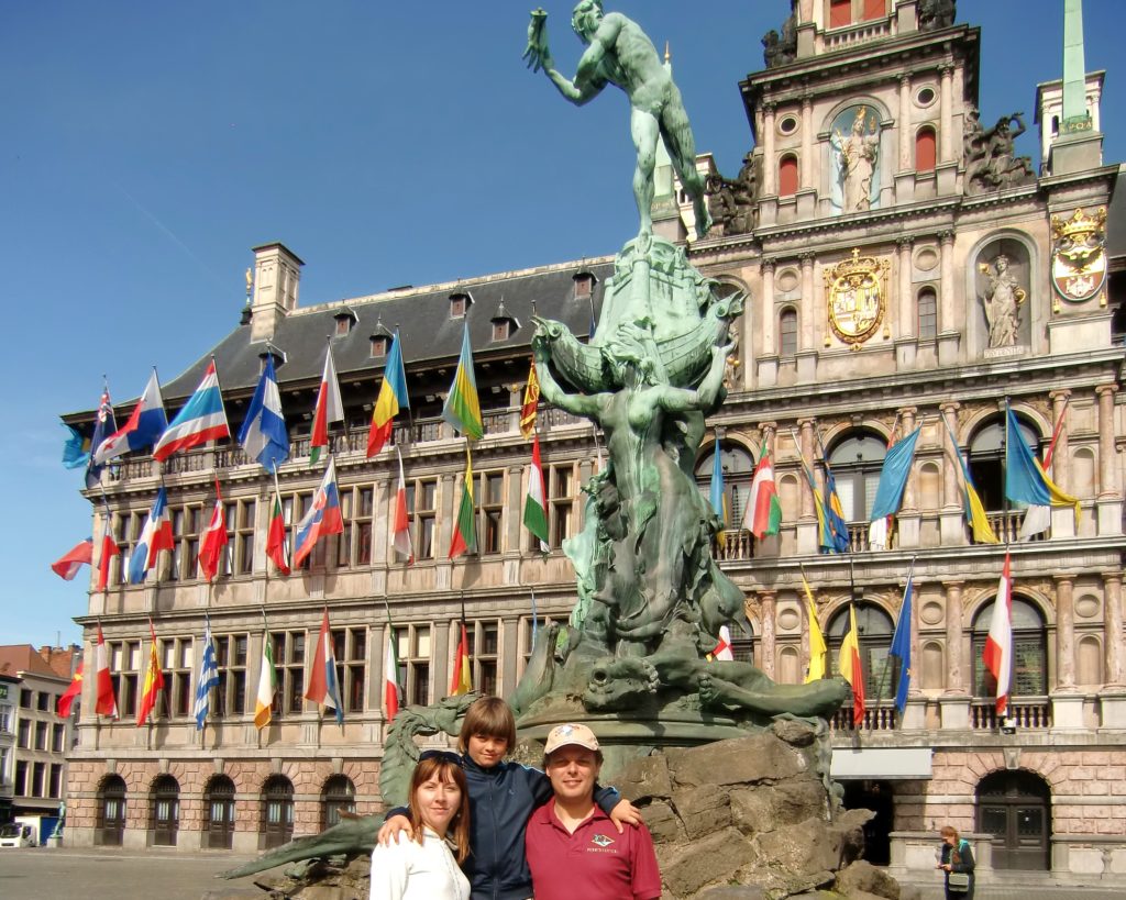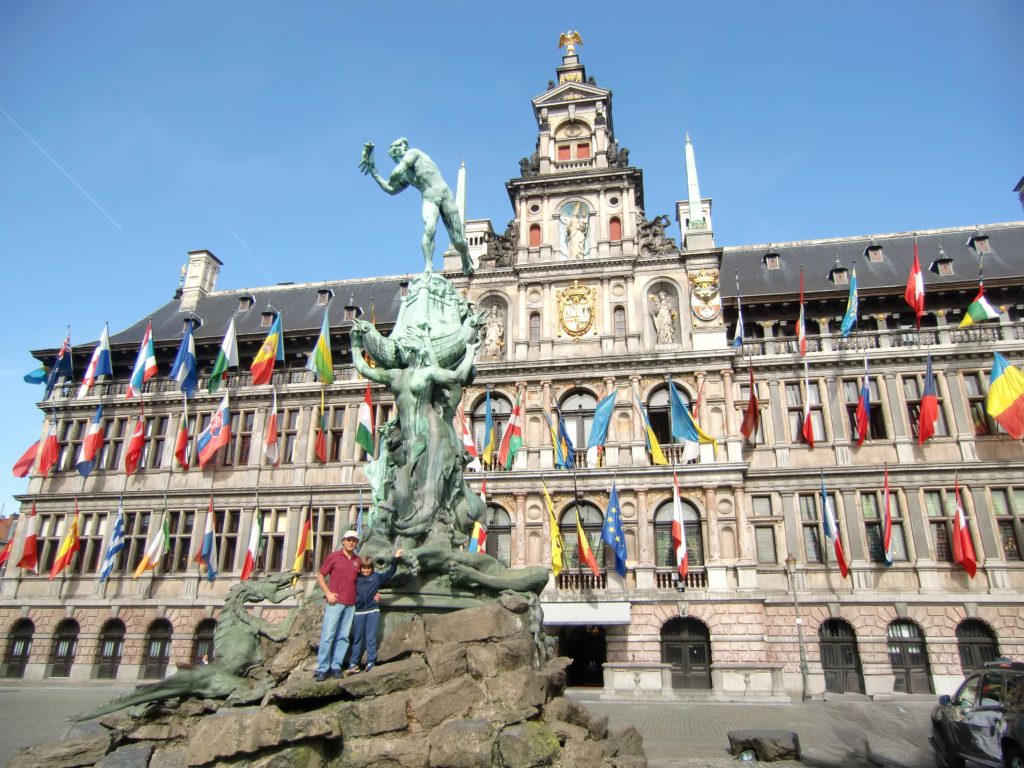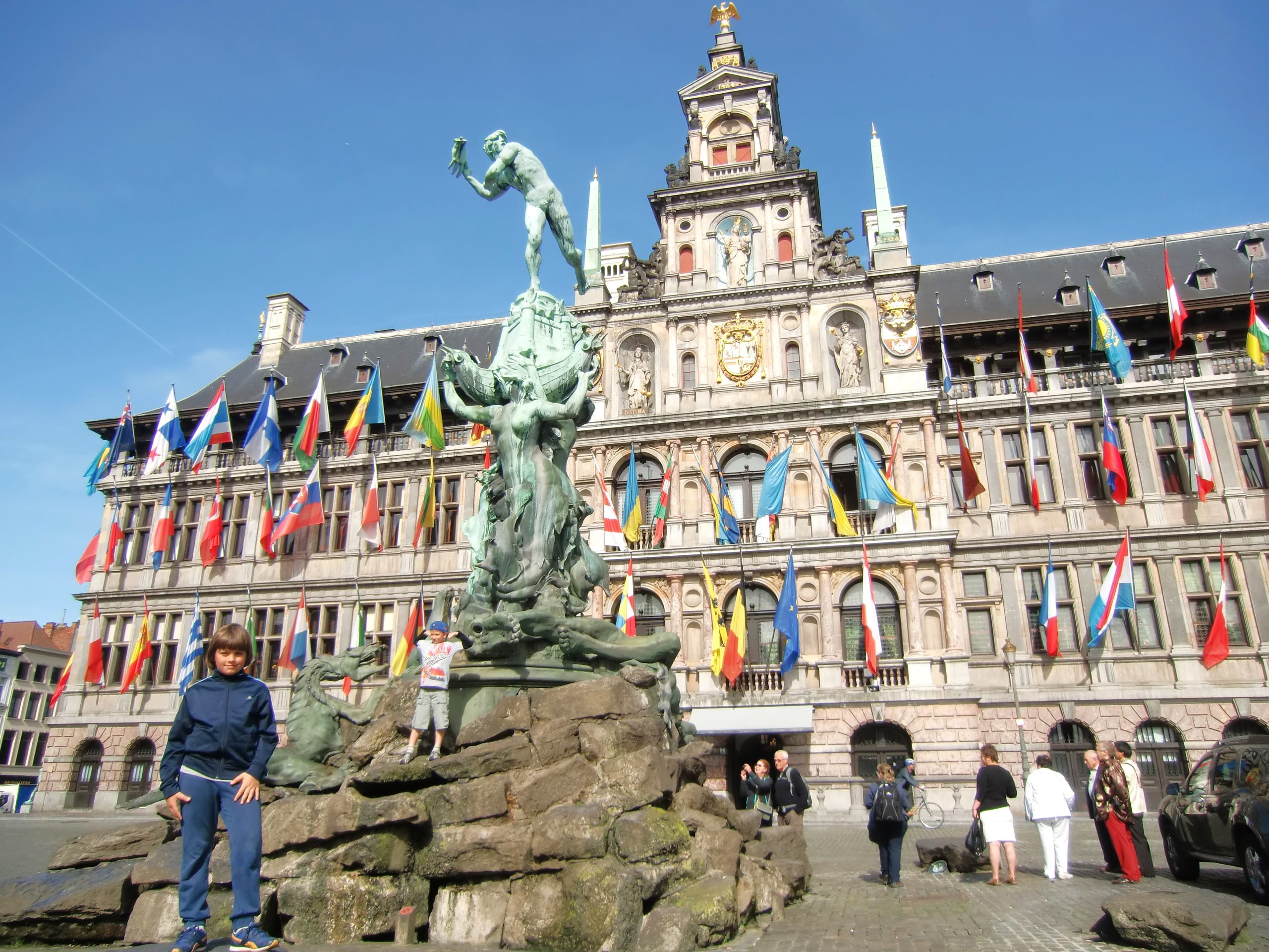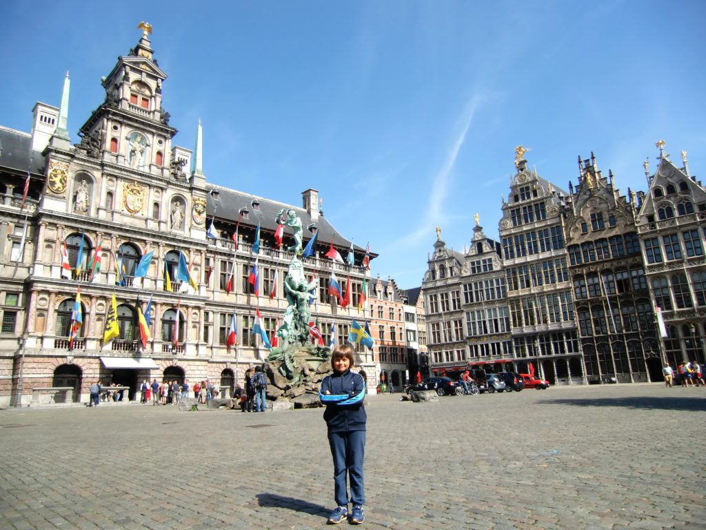Quello che ci ha sorpreso, soprattutto Samuele, è stato il colpo d’occhio offerto dalla facciata, decorata con decine di bandiere colorate: sembrava che il municipio si presentasse come un ambasciatore del mondo intero. Le bandiere rappresentano le nazioni con cui Anversa intrattiene rapporti commerciali e diplomatici, un gesto che riflette lo spirito cosmopolita della città.