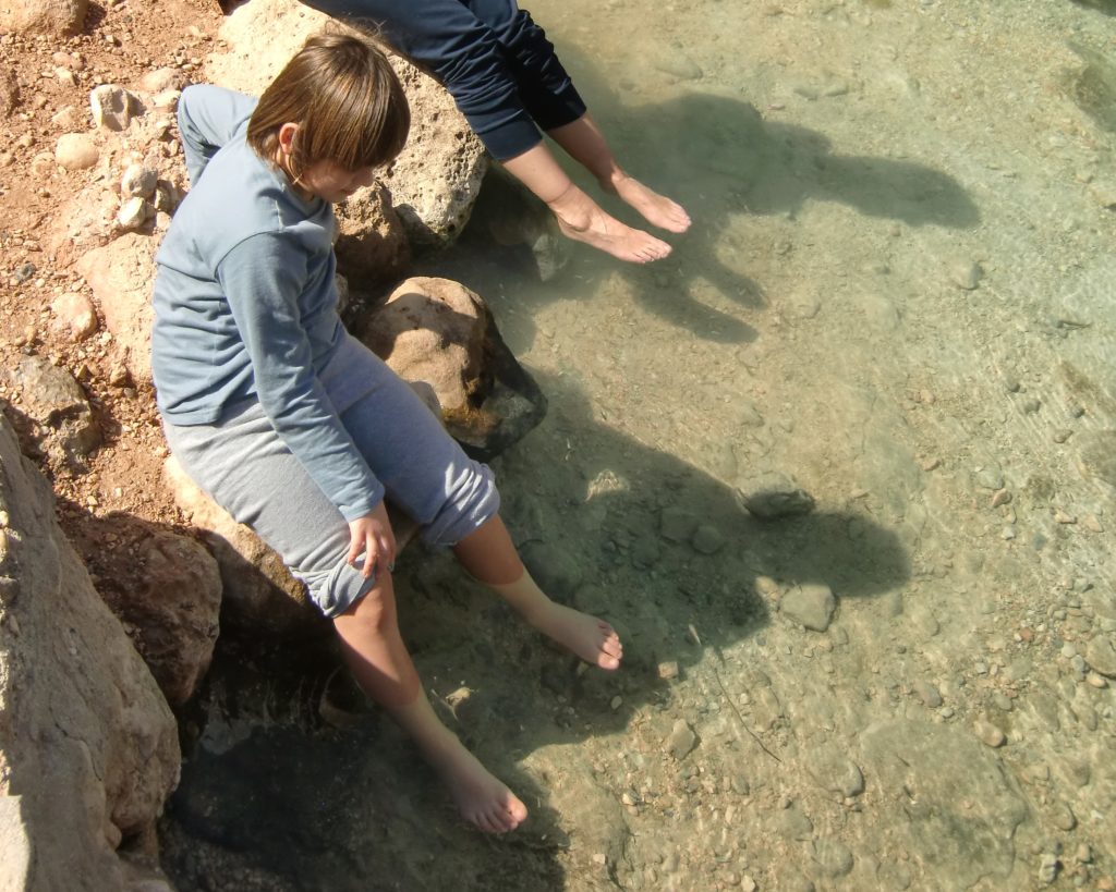Scendendo i gradini che portano alla base, il caldo si attenua e l’aria diventa più umida. L’acqua è limpida, invitante. L’idea di tuffarci era allettante, ma tra un ‘non si può’ e un ‘meglio di no’, abbiamo optato per la versione soft: seduti sul bordo, piedi in ammollo e dignità intatta!!! Ed è lì che abbiamo scoperto una delle esperienze più sorprendenti del viaggio. Piccoli pesci si avvicinavano ai piedi, mordicchiando delicatamente la pelle. Un peeling naturale, gratuito e decisamente piacevole. Samuele rideva a crepapelle, cercando di acchiapparli con le mani.
