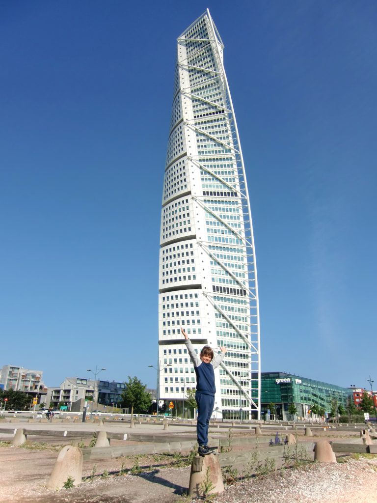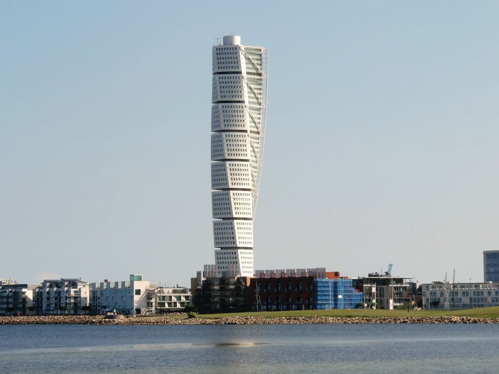 Durante il nostro breve passaggio a Malmö, non potevamo esimerci da una tappa al celebre Turning Torso, simbolo architettonico della città e punto di riferimento visivo in tutta la regione dell’Öresund. Anche solo dall’esterno, l’impatto visivo è notevole: la struttura si innalza per 190 metri con una torsione che sfida le leggi della statica, ruotando di 90° lungo i suoi 54 piani.
